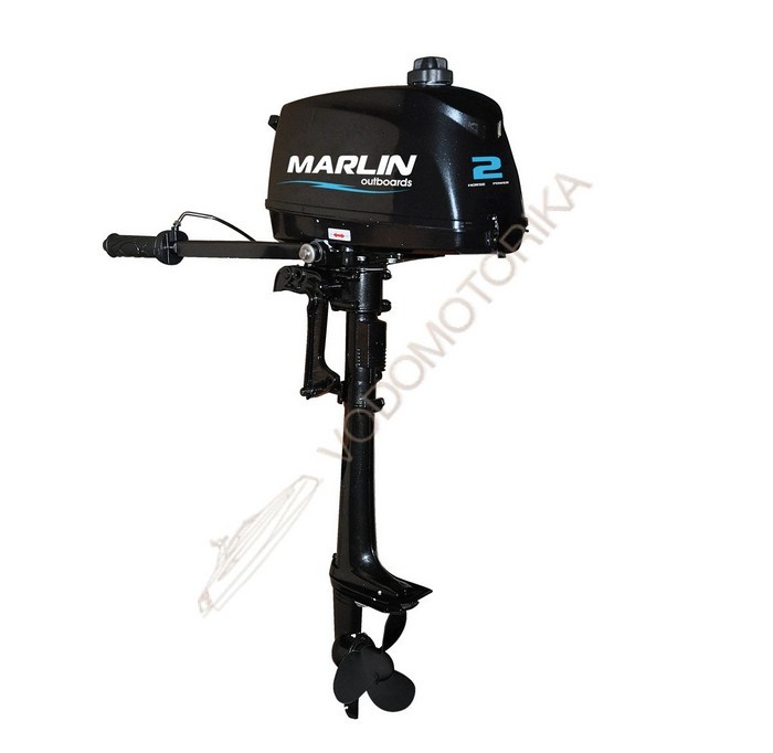 Подвесной лодочный мотор Marlin MP 2 AMHS рассчитан под стандартную высоту транца 381 мм и имеет общий вес 9.8 кг.